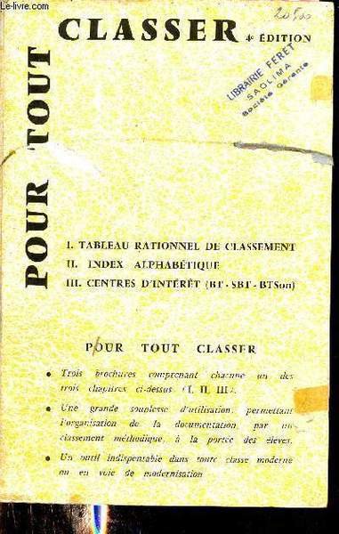 Pour tous classer - 3 brochures : Tableau rationnel de classement, index alphab�tique, centres d'int�r�t.