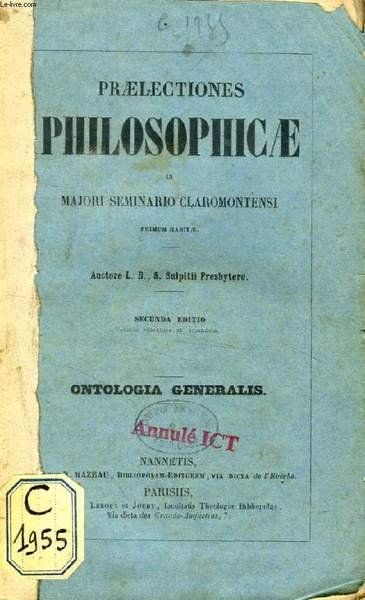 PRAELECTIONES PHILOSOPHICAE IN MAJORI SEMINARIO CLAROMONTENSI PRIMUM HABITAE, ONTOLOGIA GENERALIS | Libri antichi e moderni | L. B., S. Sulpitii Presbytero