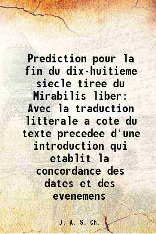 Prediction pour la fin du dix-huitieme siecle tiree du Mirabilis liber Avec la traduction litterale a cote du texte precedee d'une introduction qui etablit la concordance des dates et des evenemens 1790 | Libri antichi e moderni | J. A. S. Ch.