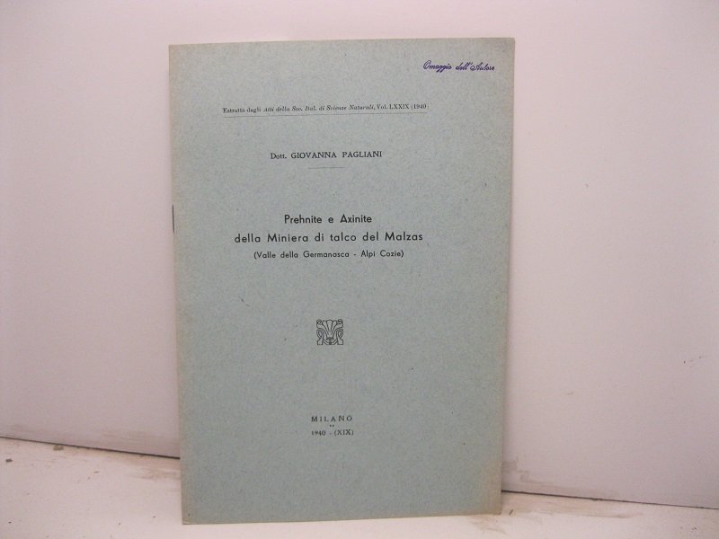 Prehnite e Axinite della miniera di talco del Malzas (Valle della Germanasca - Alpi Cozie) | Libri antichi e moderni | Pagliani Giovanna