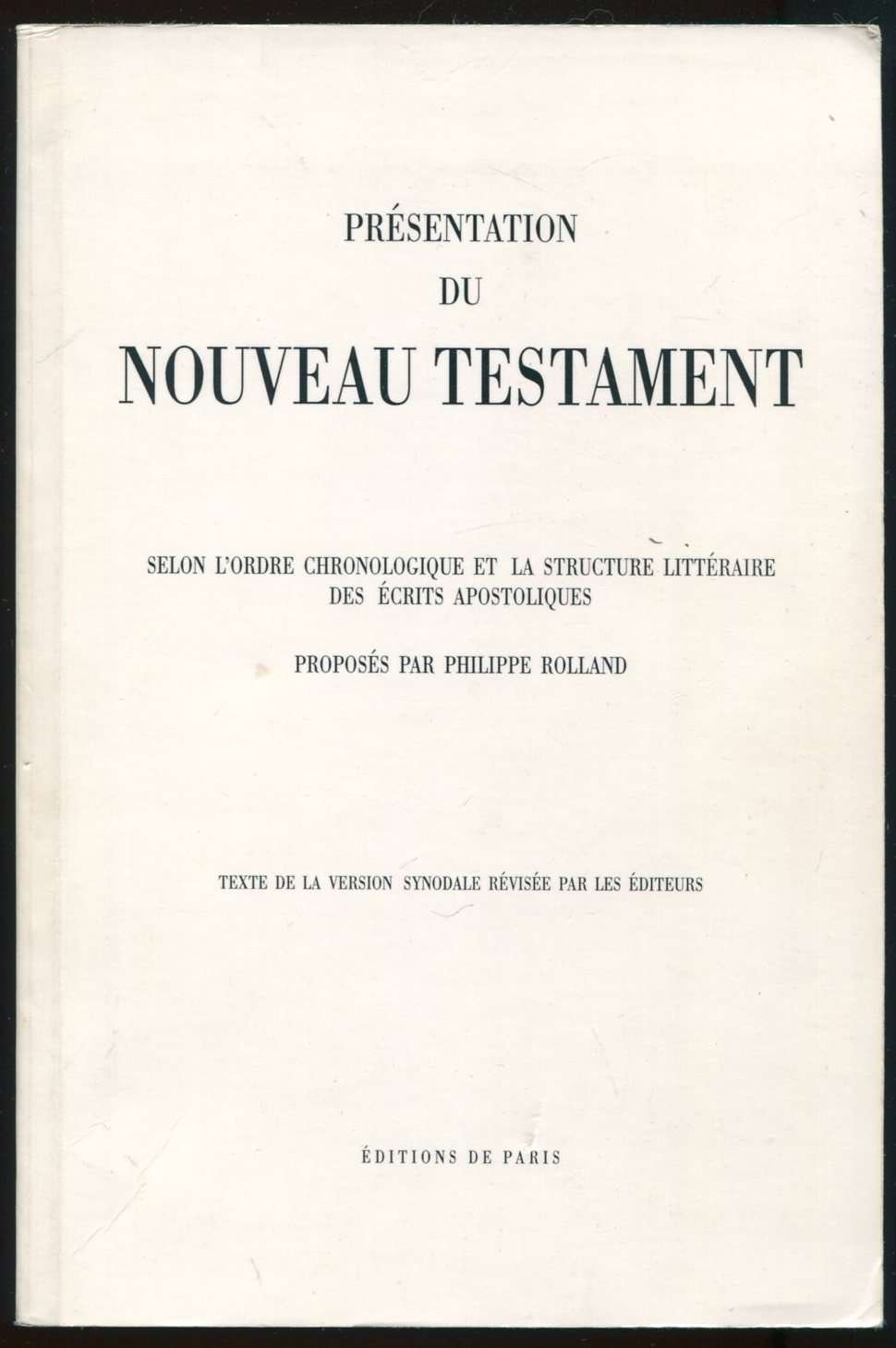 Présentation du nouveau testament selon l'ordre chronologique et la structure littéraire des écrits apostoliques | Libri antichi e moderni | Philippe Rolland (Proposés Par)