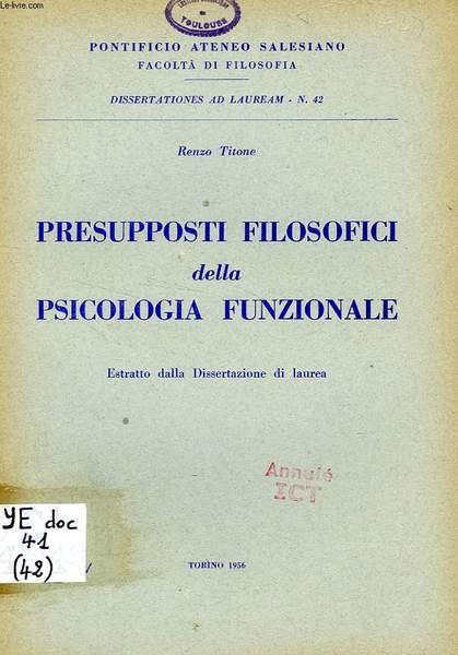 PRESUPPOSTI FILOSOFICI DELLA PSICOLOGIA FUNZIONALE | Libri antichi e moderni | Titone Renzo