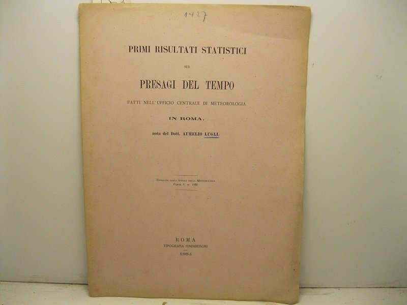 Primi risultati statistici sui presagi del tempo fatti nell'ufficio centrale di meteorologia in Roma. Estratto dagli Annali della Meteorologia, parte I, 1882 | Libri antichi e moderni | Lugli Aurelio