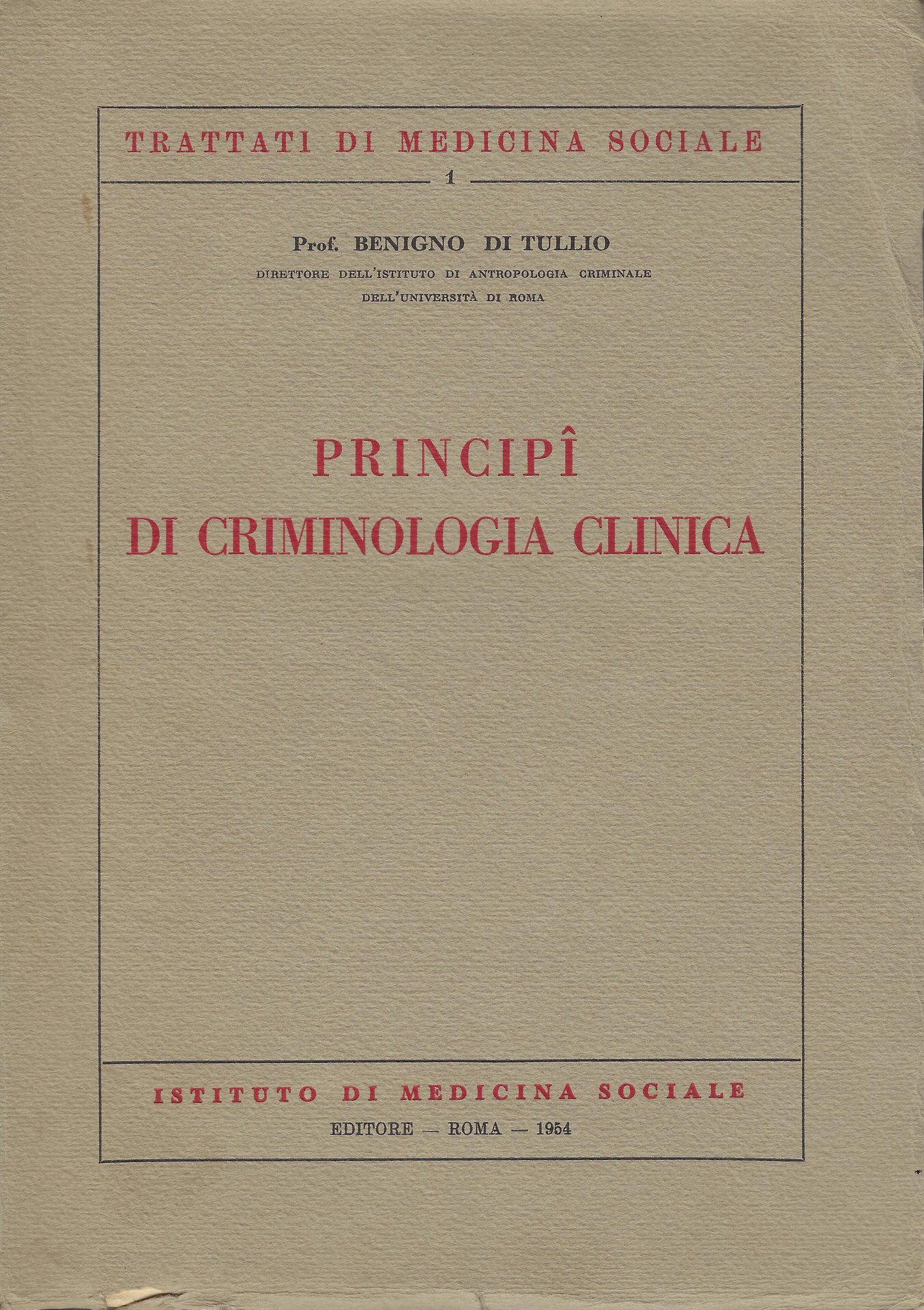 Principi di criminologia clinica | Libri antichi e moderni | Benigno Di Tullio, ,Benigno Di Tullio
