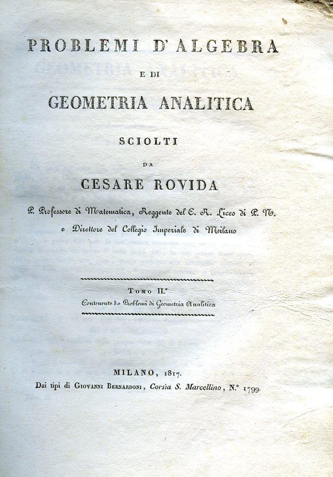 Problemi d' algebra e di geometria analitica sciolti. Tomo I°. Contenente 130 Problemi d' Algebra. Tomo II°. Contenente 80 Problemi di Geometria Analitica | Libri antichi e moderni | Rovida Cesare