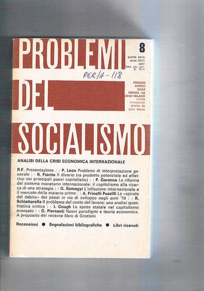 Problemi del socialismo n° 8 ott-dic. 1977. Analisi della crisi economica internazionale. | Libri antichi e moderni |