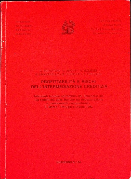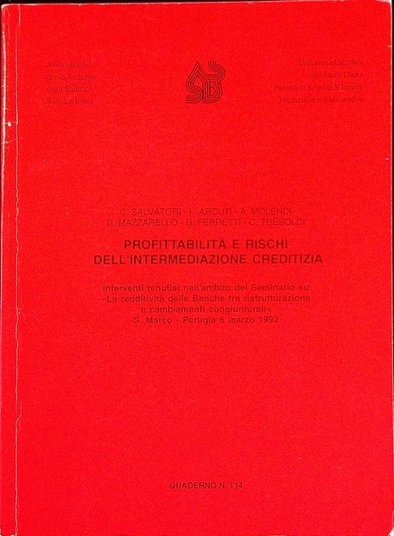 Profittabilità e rischi dell'intermediazione creditizia: interventi tenutisi nell'ambito del seminario su ”La redditività delle banche tra ristrutturazione e cambiamenti congiunturale, S. Marco - Perugia, 6 marzo 1992.
