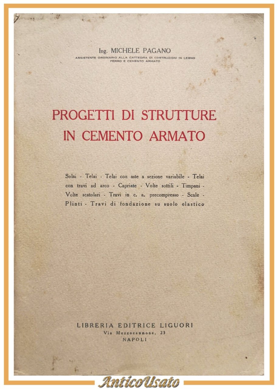 PROGETTI DI STRUTTURE IN CEMENTO ARMATO di Michele Pagano 1953 Liguori Libro | Libri antichi e moderni |