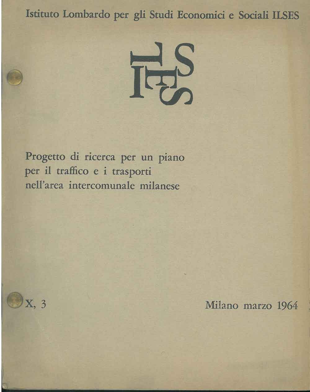Progetto di ricerca per un piano per il traffico e i trasporti nell'area intercomunale milanese | Libri antichi e moderni | Istituto Lombardi Per Gli Studi Economici E Sociali - Ilses