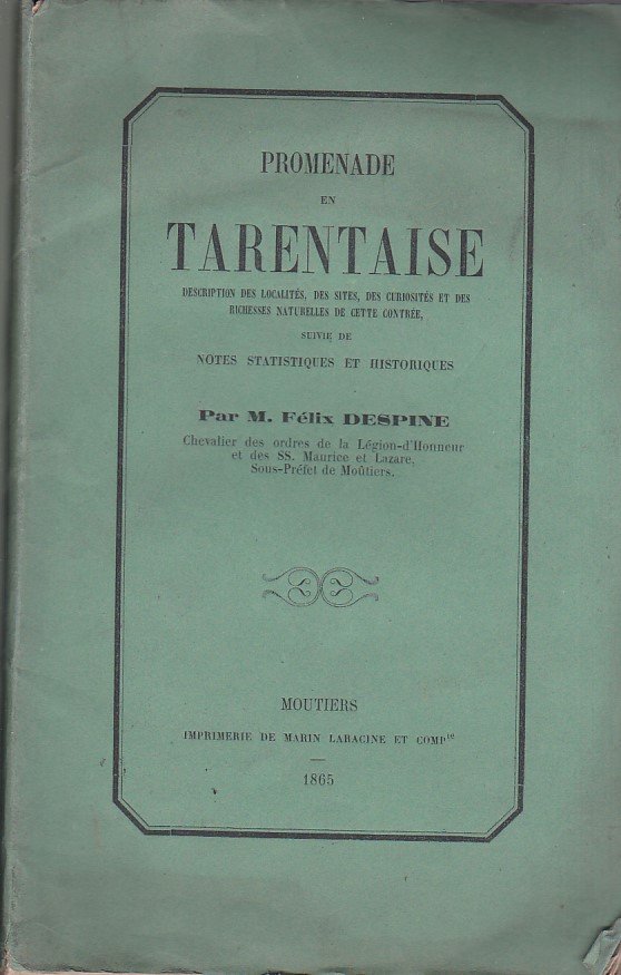 Promenade en Tarentaise. Description des localités, des sites, des curiosités et des richesses naturelles de cette contrée, suivie de notes statistiques et historiques | Libri antichi e moderni | Despine Félix
