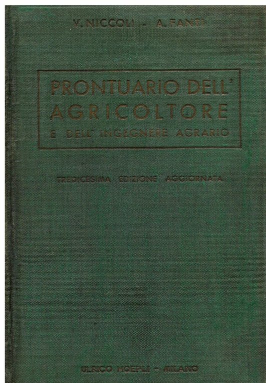 Prontuario dell' agricoltore e dell' ingegnere agrario. Tredicesima edizione con una nota sullo sviluppo dell' agricoltura italiana negli anni XVII e XVIII a cura del dott. ing. Arnaldo Fanti | Libri antichi e moderni | Niccoli Vittorio