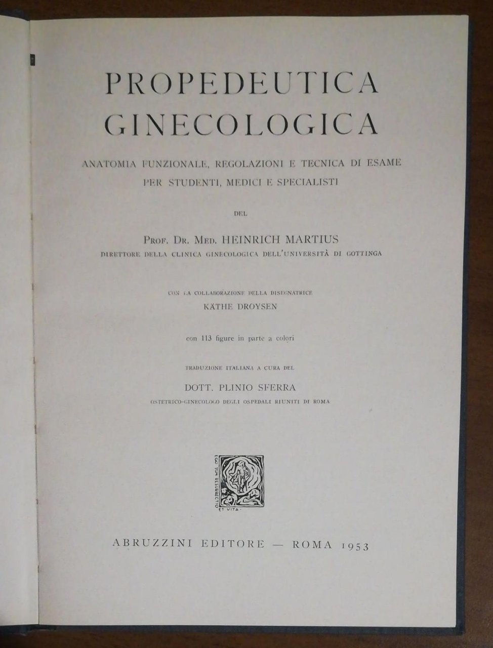 PROPEDEUTICA GINECOLOGICA. Anatomia funzionale, regolazioni e tecnica di esame per studenti, medici e specialisti | Libri antichi e moderni | MARTIUS, ,MARTIUS