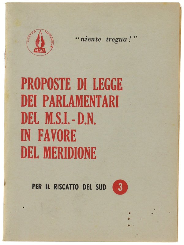 PROPOSTE DI LEGGE DEI PARLAMENTARI DEL M.S.I.-D.N. IN FAVORE DEL MERIDIONE. Per il riscatto del sud n.3 (1972-1973) | Libri antichi e moderni | Autori Vari.