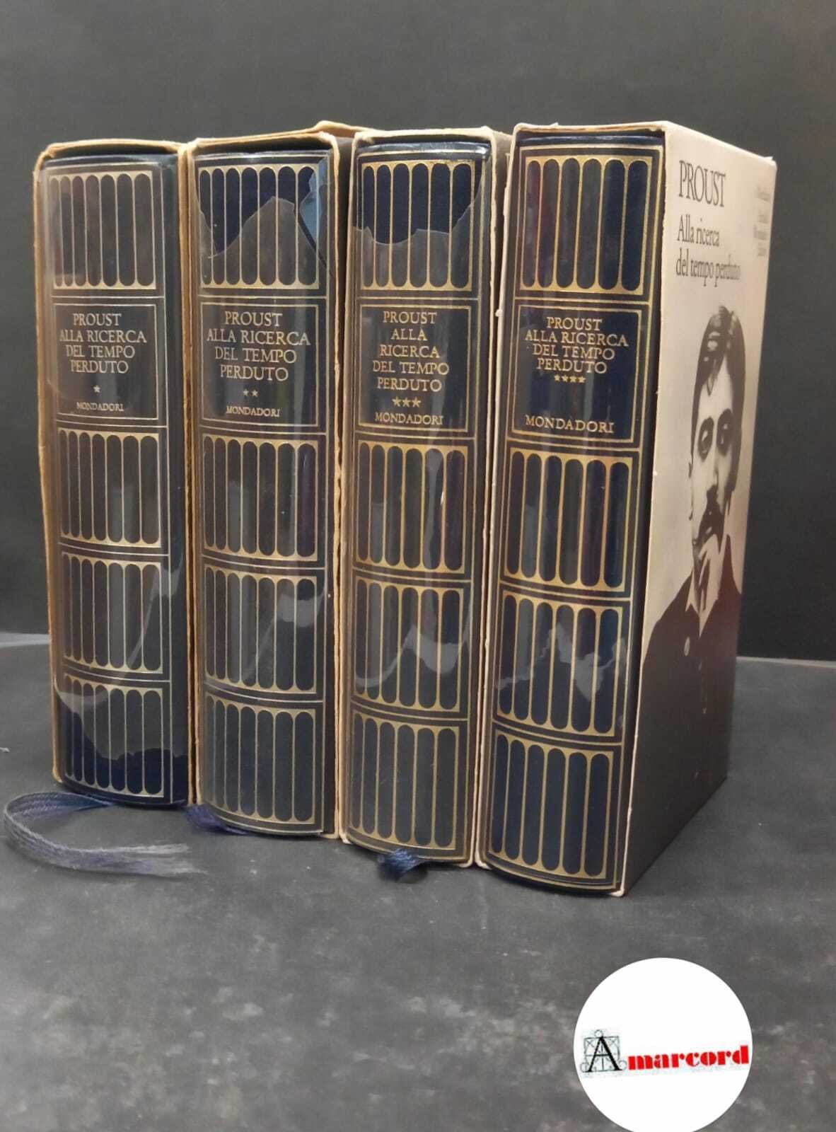 966 Proust, Marcel Proust, Marcel. , and Raboni, Giovanni. , De Maria, Luciano. , Beretta Anguissola, Alberto. , Galateria, Daria. Alla ricerca del tempo perduto (4 volumi) Milano A. Mondadori, 1983 Meridiani. , A. Mondadori 1983 italiano, in sedicesimo circa 5000 pagine complessive 37956