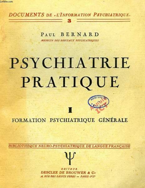 PSYCHIATRIE PRATIQUE, FORMATION, SPECIALISATION ET SELECTION DES AUXILIAIRES MEDICO-SOCIAUX DU PSYCHIATRE, I, FORMATION PSYCHIATRIQUE GENERALE | Libri antichi e moderni | Bernard Paul