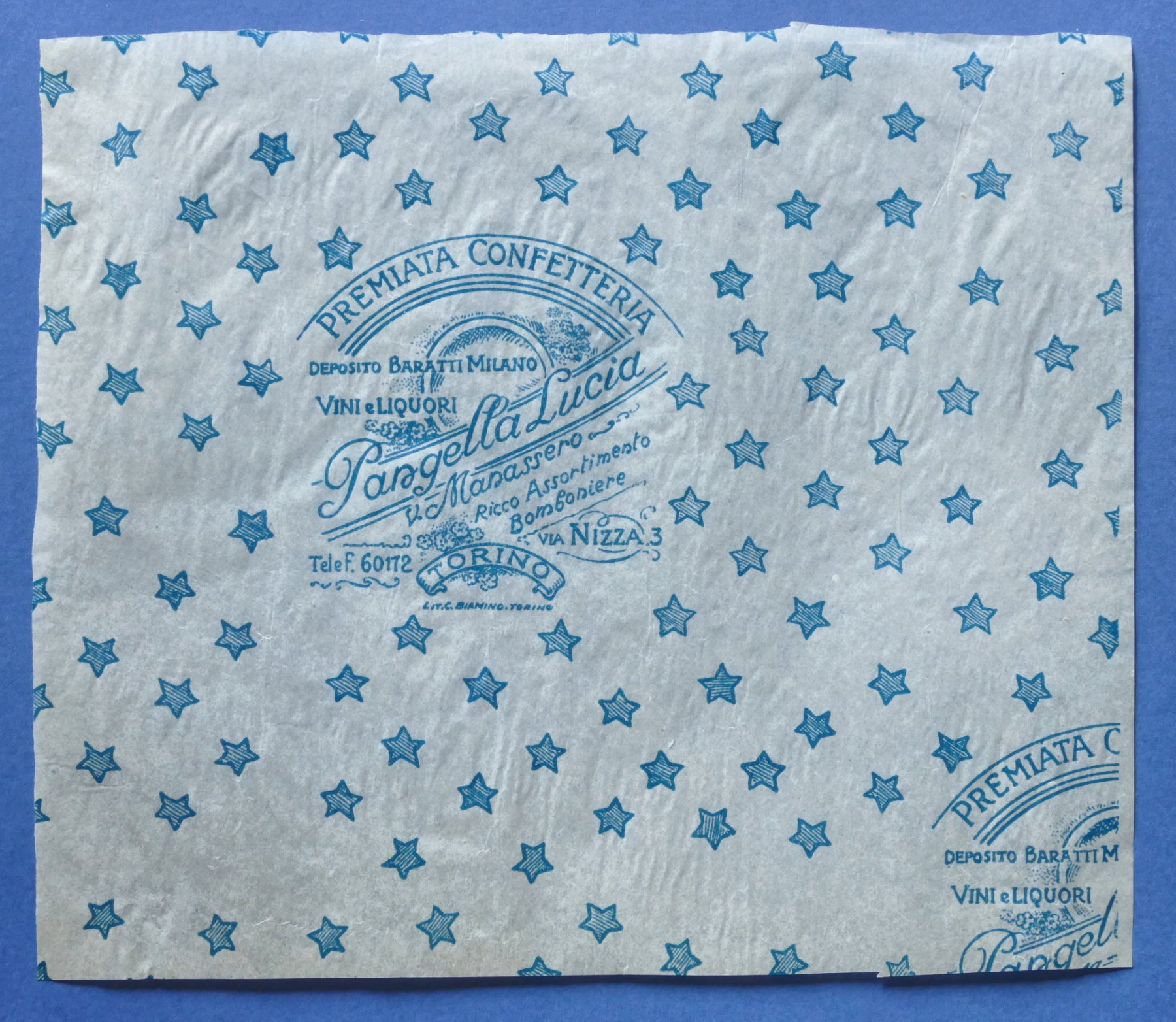 Pubblicità Carta confezione epoca Premiata Confetteria Pangella - Torino | Libri antichi e moderni |