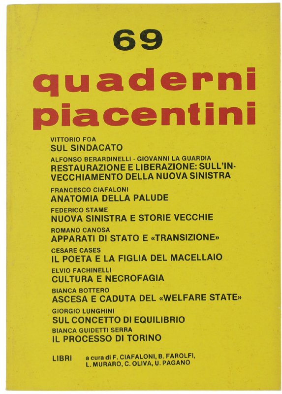 QUADERNI PIACENTINI. N. 69 - Dicembre 1978 | Libri antichi e moderni | Bellocchio Piergiorgio (Direttore)