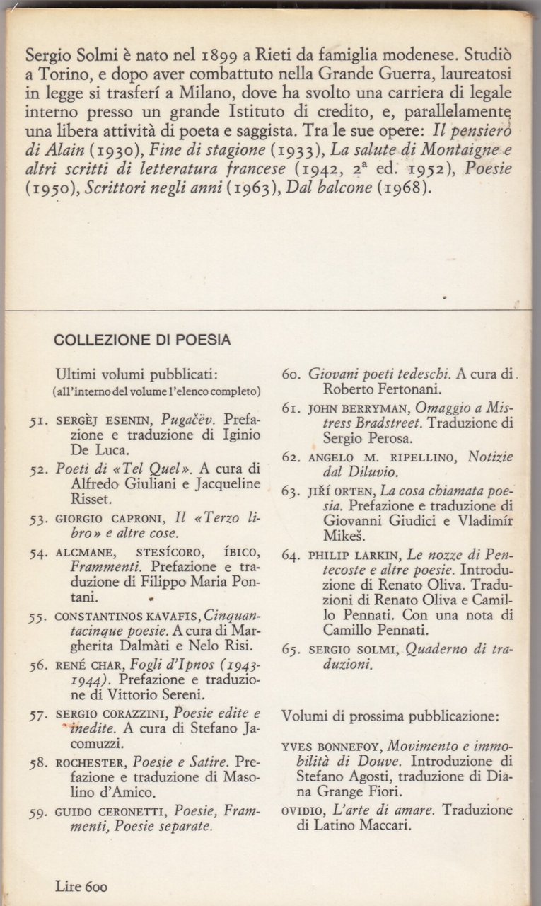 Quaderno di traduzioni | Libri antichi e moderni | Sergio Solmi, ,Sergio Solmi