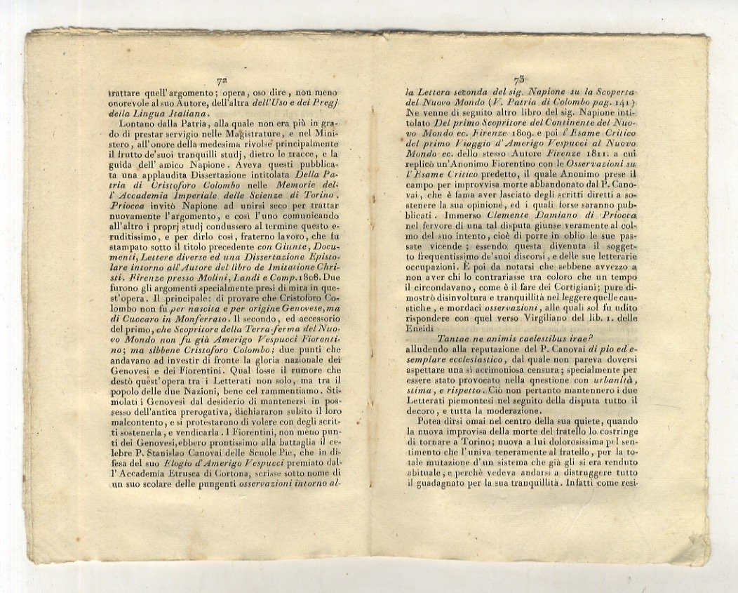 [S.l.], [s.n.t], [dopo il 1813], in-8 brossura fittizia, pp. [5], da 66-84. La data presunta di stampa si desume dall'ultima data presente nel testo a p. 82.