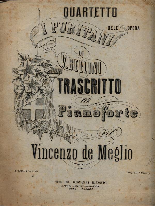Quartetto dell'opera i puritani di V. Bellini trascritto per pianoforte Op. 40 | Libri antichi e moderni | De Meglio, Vincenzo