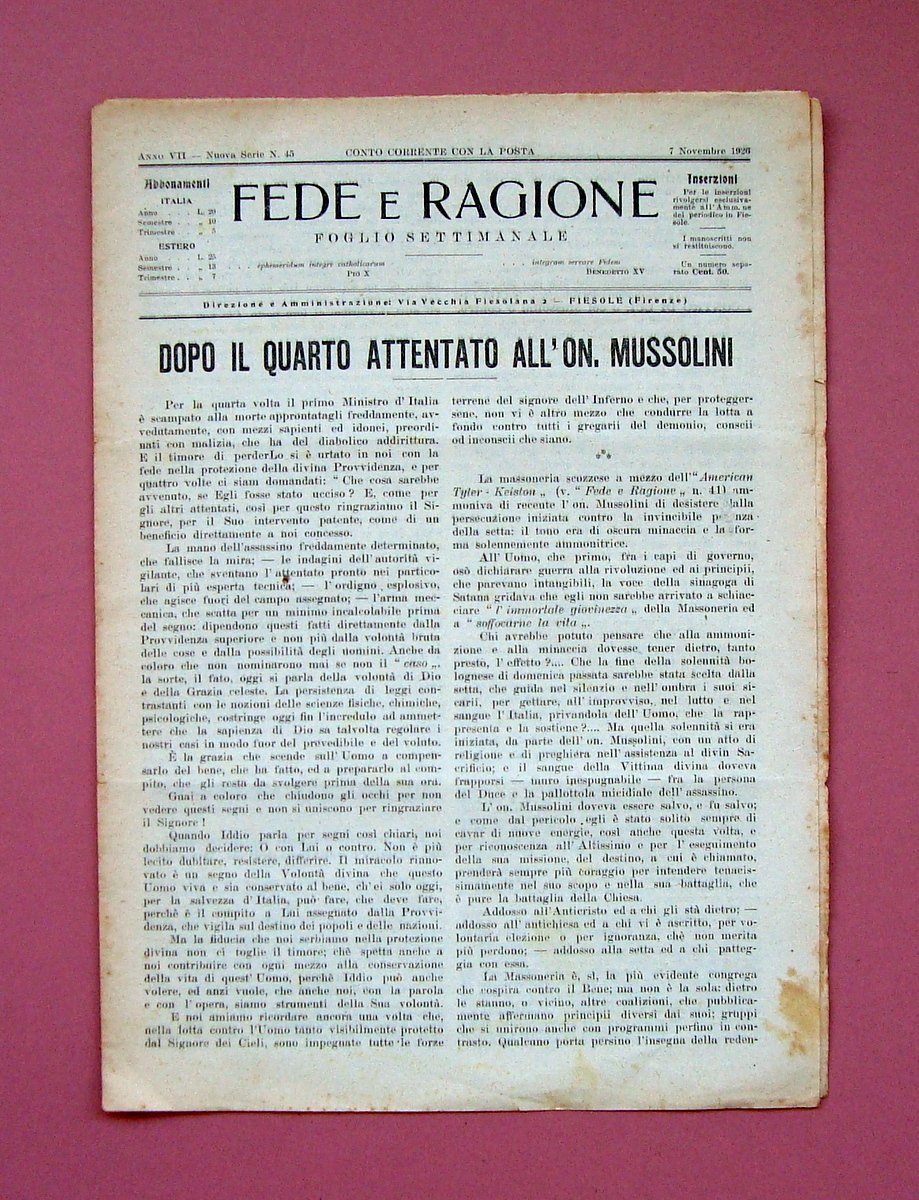 Quarto attentato Mussolini Massoneria Manifesto Banchieri in Fede e Ragione 1926 | Libri antichi e moderni |