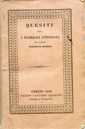 Quesiti sopra i pubblici ufficiali | Libri antichi e moderni | Manno Giuseppe