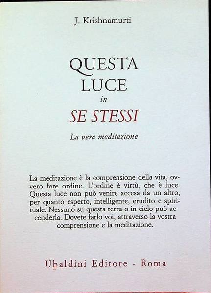 Questa luce in se stessi: la vera meditazione. | Libri antichi e moderni | Krishnamurti, Jiddu.
