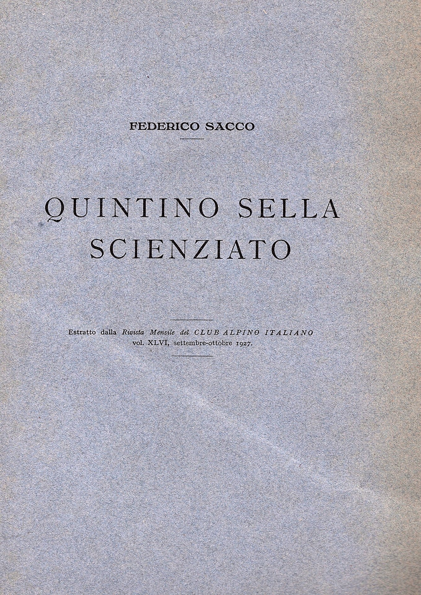 Quintino Sella scienziato. Estratto dalla Rivista Mensile del Club Alpino Italiano vol. XLVI settembre-ottobre 1927