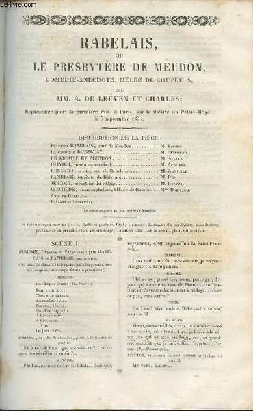 Rabelais, ou le presbytère de Meudon- Comédie-Anecdote, mêlée de couplets | Libri antichi e moderni | Mm. De Leuven A. Et Charles