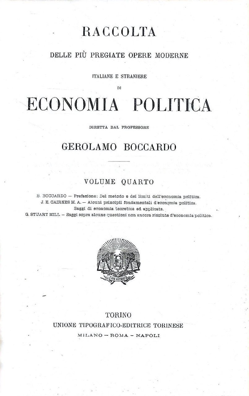 Raccolta delle più pregiate opere moderne italiane e straniere di Economia Politica diretta dal prof. Gerolamo Boccardo. (Biblioteca dell'Economista - Serie Terza - Volume Quarto)