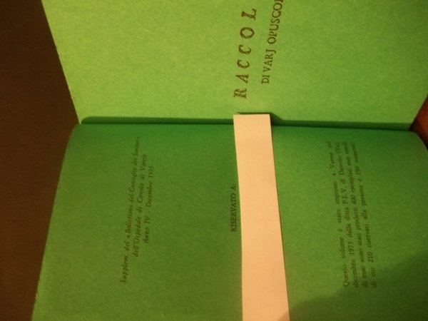 SUPPLEM. DEL BOLLETTINO DEL CONSIGLIO DEI SANITARI DELL'OSPEDALE DI CIRCOLO DI VARESE ANNO IV DICEMBRE 1975- VOLUME RISERVATO ALLA PERSONA - COPERTINA RIGIDA CON CUSTODIA 18 X 11 PP. 155 - ANASTATICA SU CARTA VERDE. OTTIME CONDIZIONI.