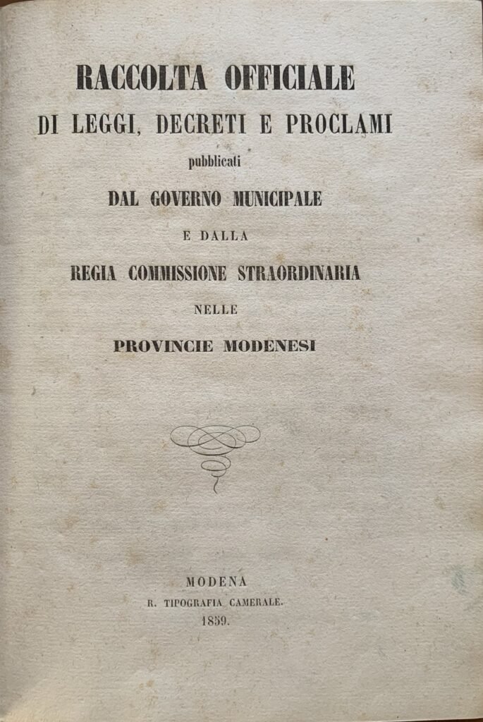 Raccolta officiale di leggi, decreti e proclami pubblicati dal Governo Municipale e dalla Regia Commissione Straordinaria nelle Provincie Modenesi