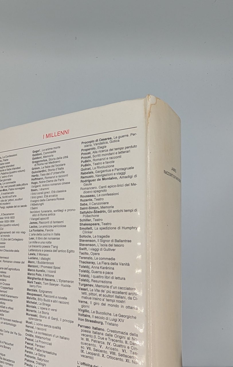 James Henry: Racconti di fantasmi. Einaudi, 1988In-8 (Cm 22 x 14), pp. XIII-683, legatura editoriale con sovraccoperta illustrata, cofanetto editoriale illustrato. Collana I Millenni. A cura di Leon Edel, con un saggio di Virginia Woolf. Un millimetrico alone alla pare superiore del cofanetto con millimetrico interessamento del dorso della sovraccop. MOLTO BUONO