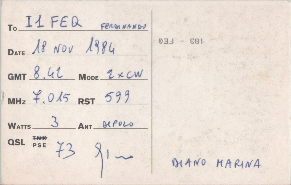 Radio Card. Perugia 1984. IØWPL - Gino Peritore