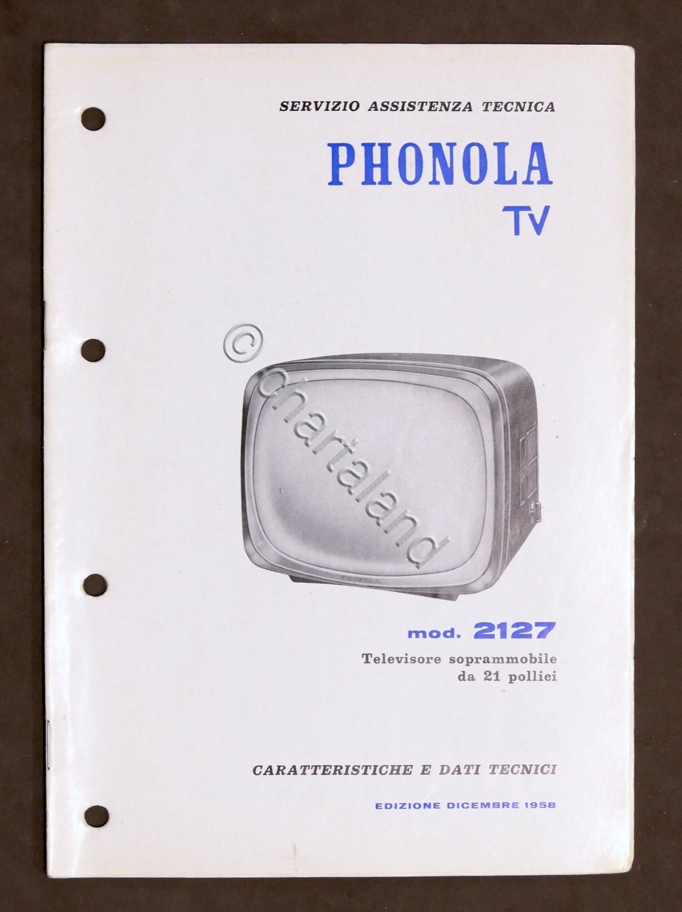 Radiotecnica - Phonola Tv - Caratteristiche e dati - mod. 2127 - ed. 1958 | Libri antichi e moderni |