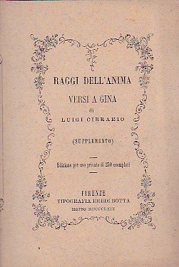 Raggi dell' anima. Versi a Gina (Supplemento). Edizione per uso privato di 250 esemplari | Libri antichi e moderni | Cibrario Luigi