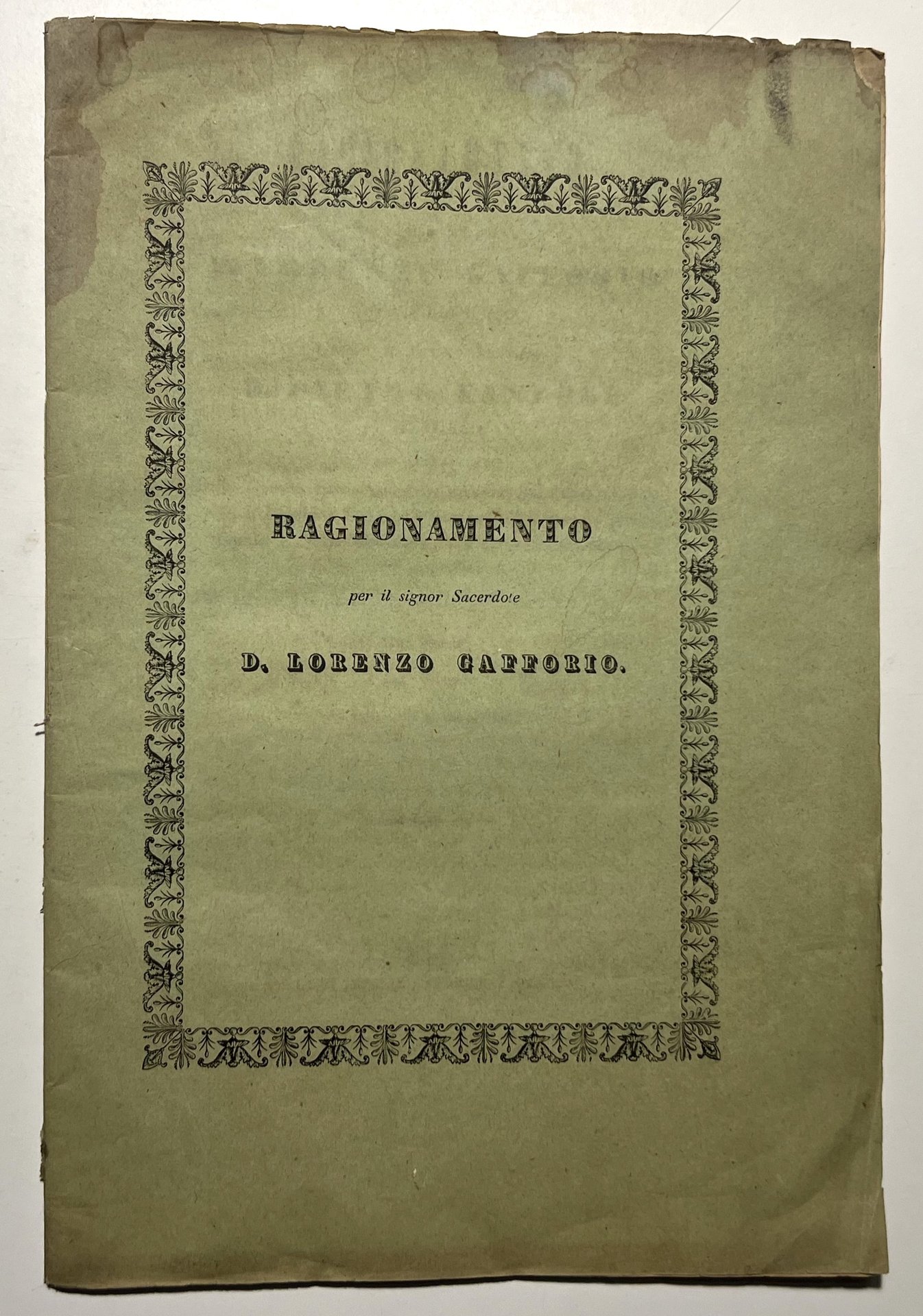 Ragionamento pel signor Sacerdote D. Lorenzo Gafforio - ed. 1837