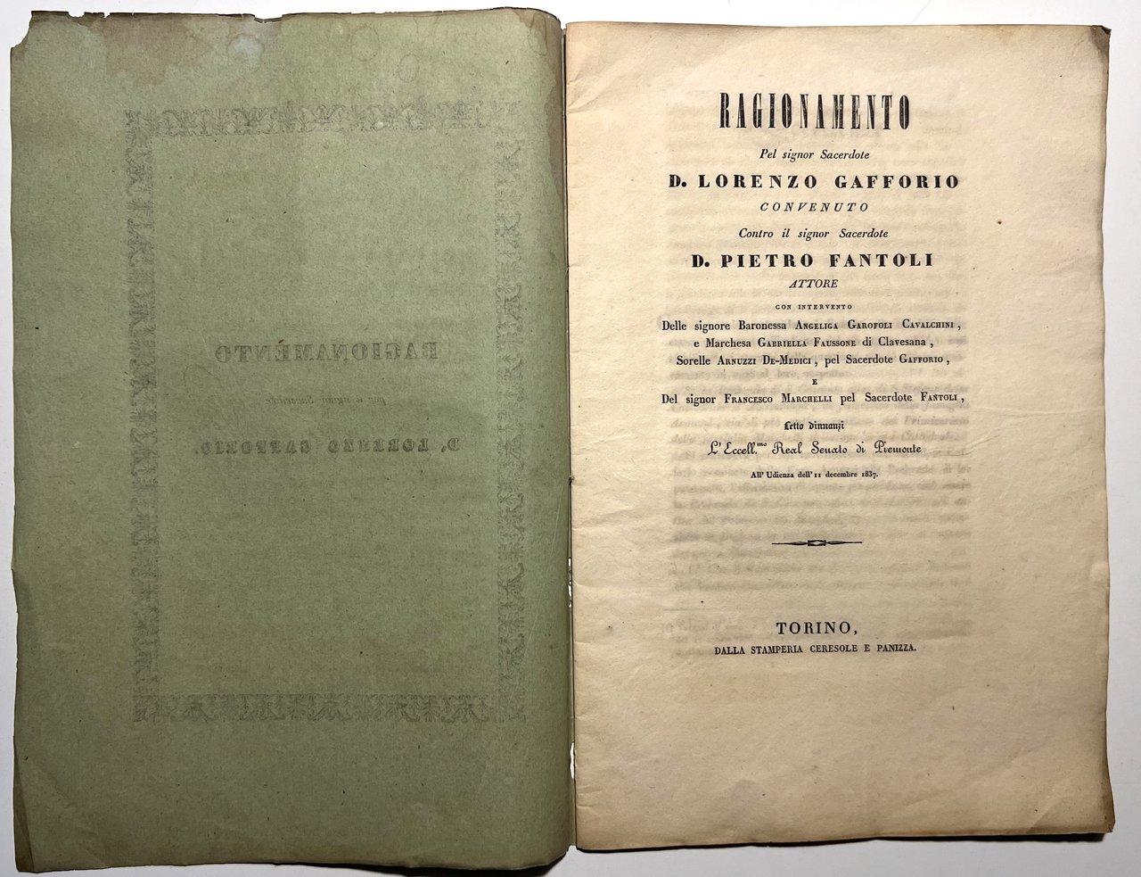 Ragionamento pel signor Sacerdote D. Lorenzo Gafforio - ed. 1837 | Libri antichi e moderni |