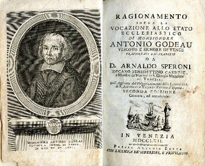 Ragionamento sopra la vocazione allo Stato Ecclesiastico. Trasportato dal franzese da D. Arnaldo Speroni decano benedettino - casinese e Maestro de'Novizzi in S. Giorgio Maggiore di Venezia. Coll'aggiunta del Volgarizzamento della Lettera XXI. | Libri antichi e moderni | Godeau Antoine