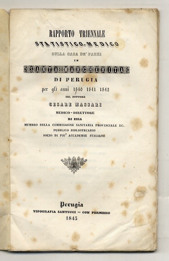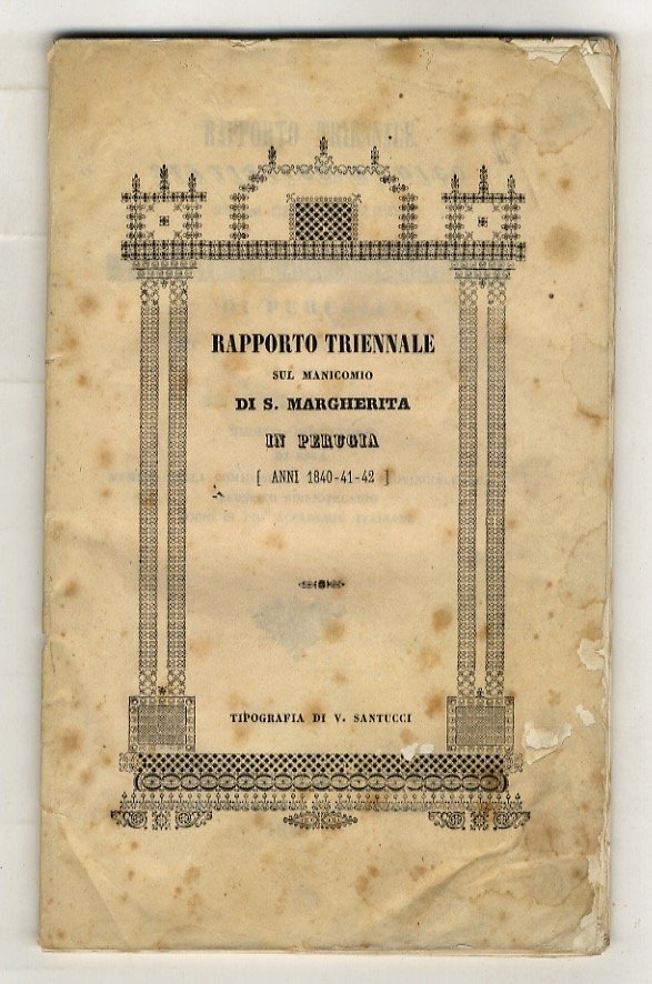 Rapporto triennale statistico-medico sulla casa de' pazzi in Santa Margherita di Perugia per gli anni 1840, 1841, 1842. | Libri antichi e moderni | Massari Cesare.