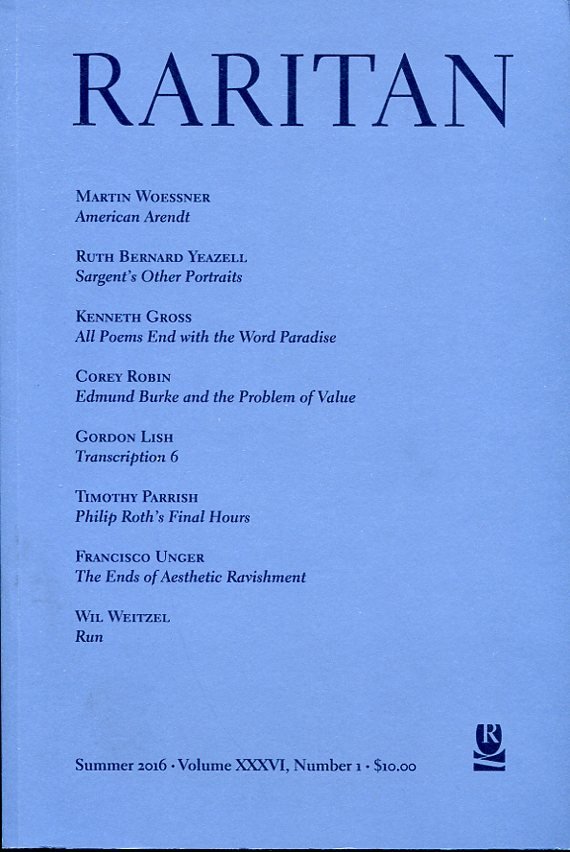 Raritan : A Quaterly Review : Summer 2016 - Vol XXXVI No 1