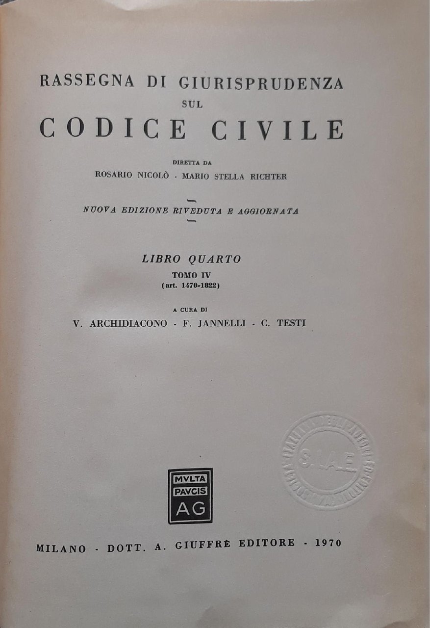 Rassegna di giurisprudenza sul codice civile - libro quarto , tomo IV (art.1470-1822) | Libri antichi e moderni | Rosario Nicolò - Mario Stella Richter, ,Rosario Nicolò - Mario Stella Richter