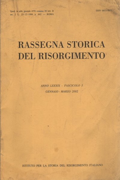 Rassegna storica del Risorgimento, anno LXXXIX, fascicolo I, gennaio-marzo 2002 | Libri antichi e moderni |