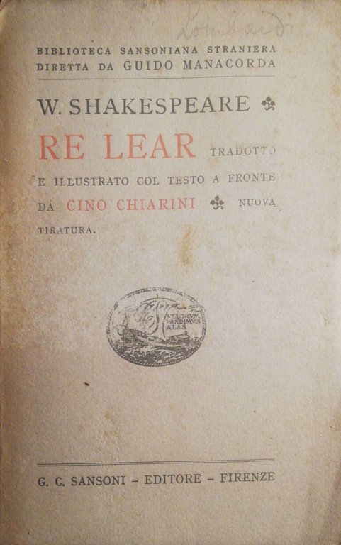 Re Lear | Libri antichi e moderni | William Shakespeare, ,William Shakespeare
