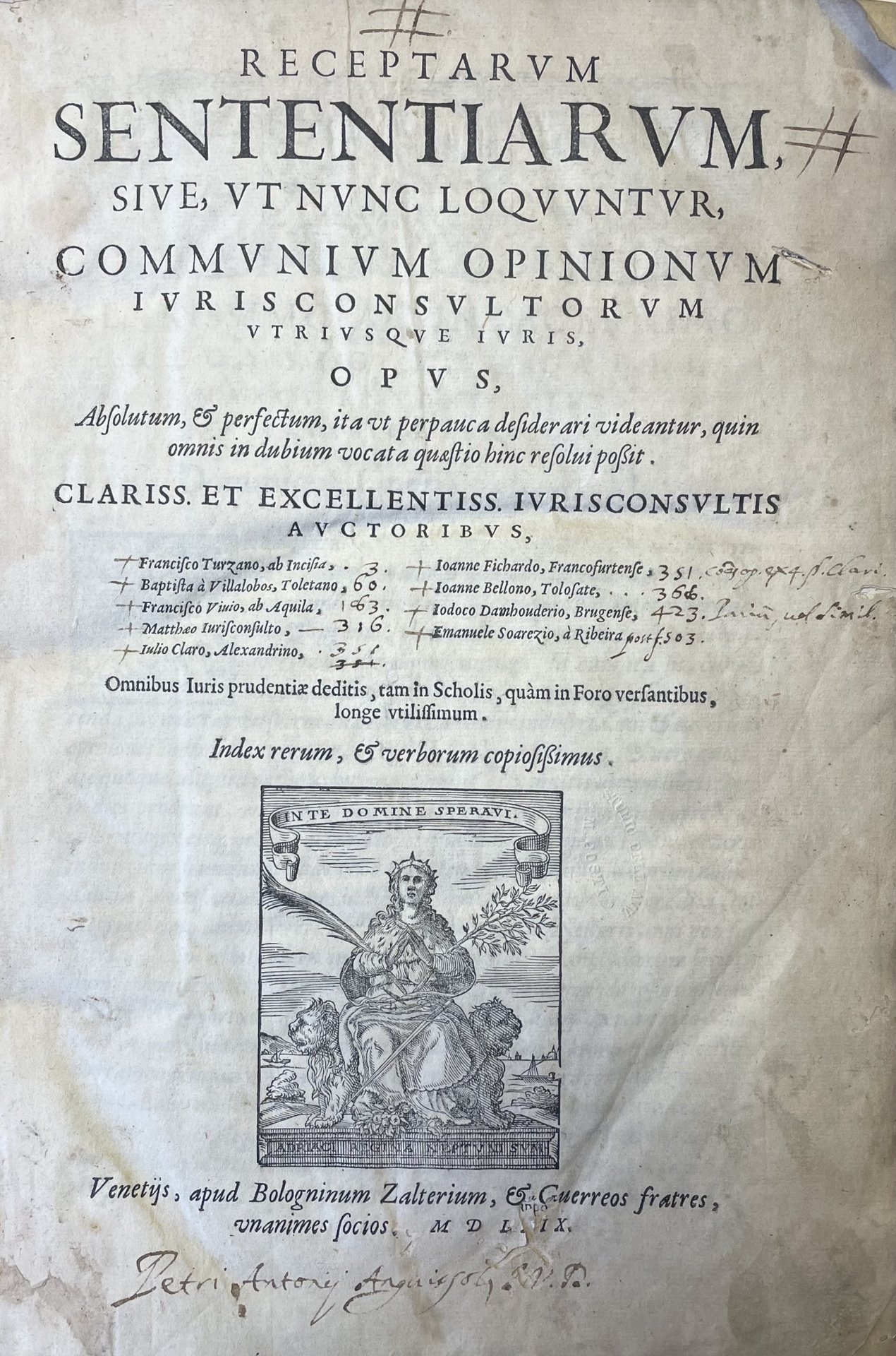 RECEPTARUM SENTENTIARUM, SIVE, UT NUNC LOQUUNTUR, COMMUNIUM OPINIONUM IURISCONSULTORUM UTRIUSQUE IURIS, OPUS, ABSOLUTUM, ET PERFECTUM, ITA UT PERPAUCA DESIDERARI VIDEANTUR, QUIN OMNIS IN DUBIUM VOCATA QUAESTIO HINC RESOLUI POSSIT