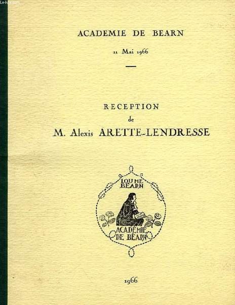 RECEPTION DE M. ALEXIS ARETTE-LENDRESSE | Libri antichi e moderni | Larrieu J.-E.
