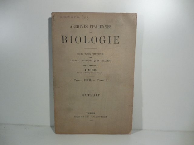 In 8, pp. numerate da 149 a 171. Brossura editoriale. Estratto da Archives italiennes de biologie.