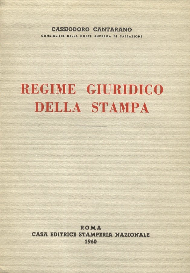Regime giuridico della stampa. | Libri antichi e moderni | Cantarano Cassiodoro.