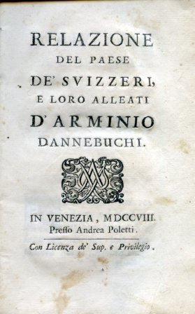 Relazione del Paese de' Svizzeri, e loro alleati d'Arminio Annebuchi | Libri antichi e moderni | Bianchi Vendramino (Arminio Dannebuchi)