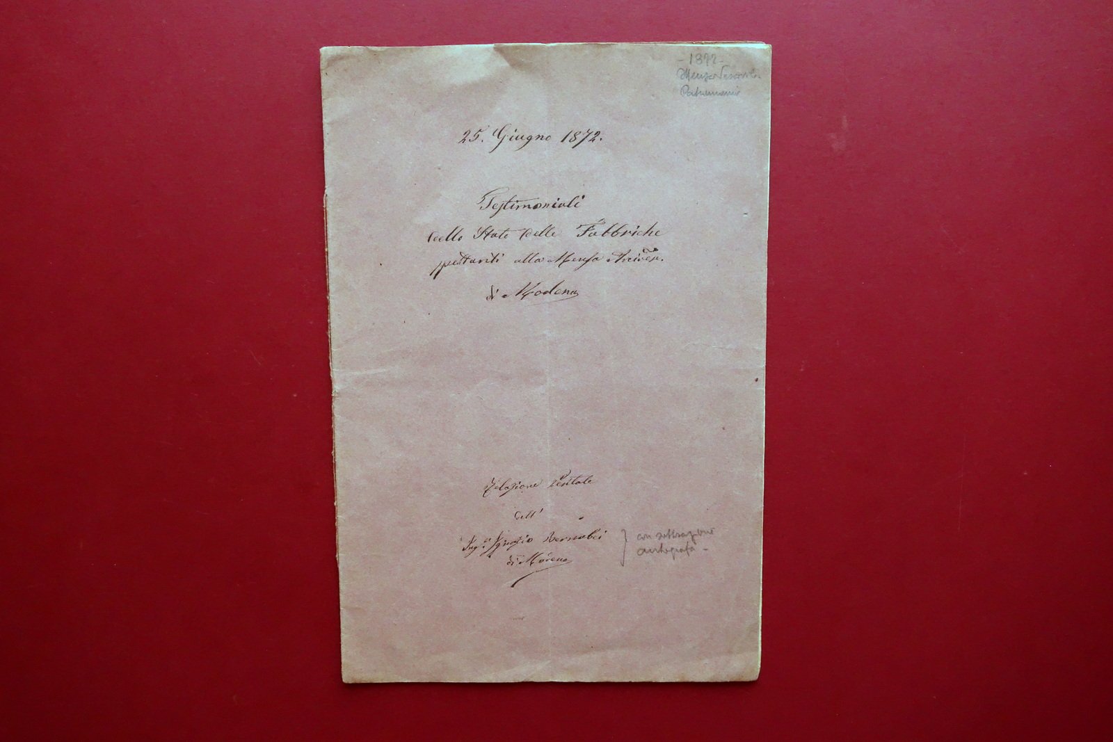 Relazione Perizia Stato delle Fabbriche Mensa Arcivescovile di Modena 1872 Copia | Libri antichi e moderni |